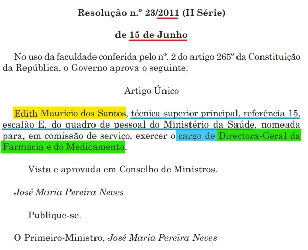 • Cargo: Directora-Geral da Farmácia e do Medicamento, a 15 Jun 2011.