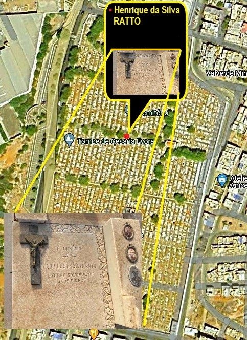• Sepultura/Campa. Henrique casou com Maria Antónia do ROSÁRIO ®. (Maria Antónia do ROSÁRIO ® nasceu em Nossa Senhora do Rosário, Ribeira Brava, São Nicolau, Cabo Verde, faleceu no Mindelo, (Nossa Srª da Luz) São Vicente, Cabo Verde e foi sepultada no Mindelo, (Nossa Srª da Luz) São Vicente, Cabo Verde.) |