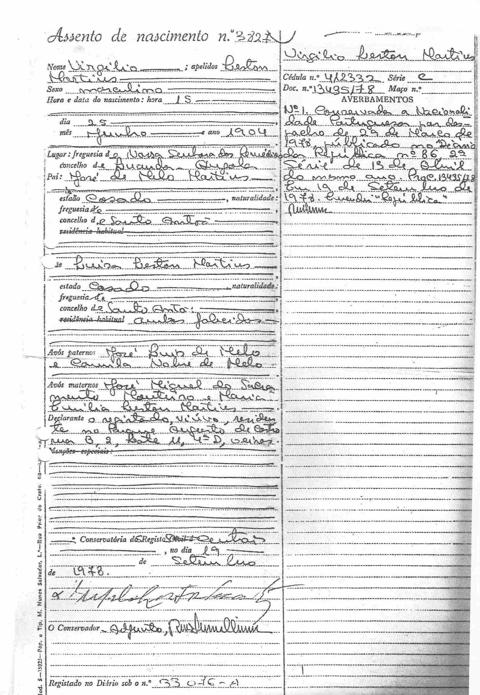 - Nascimento: 25 Jun 1904, Luanda, , Luanda, Angola