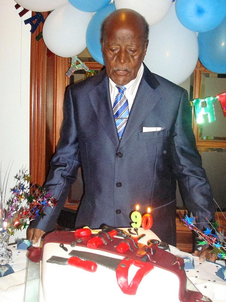 • Foto aniversário: 90º aniversário, 8 Ago 2011. Rogério teve uma relação com Armanda Augusta Spencer RODRIGUES ®, filha de Alfredo Mendes RODRIGUES ® e Maria da Graça SPENCER. (Armanda Augusta Spencer RODRIGUES ® nasceu a 16 Jul 1926 na Cidade da Praia, Ilha de Santiago, Cabo Verde e faleceu em 2011.) Rogério a seguir casou com Maria dos Prazeres LIMA ®. (Maria dos Prazeres LIMA ® nasceu em Cabo Verde e faleceu em †.) |