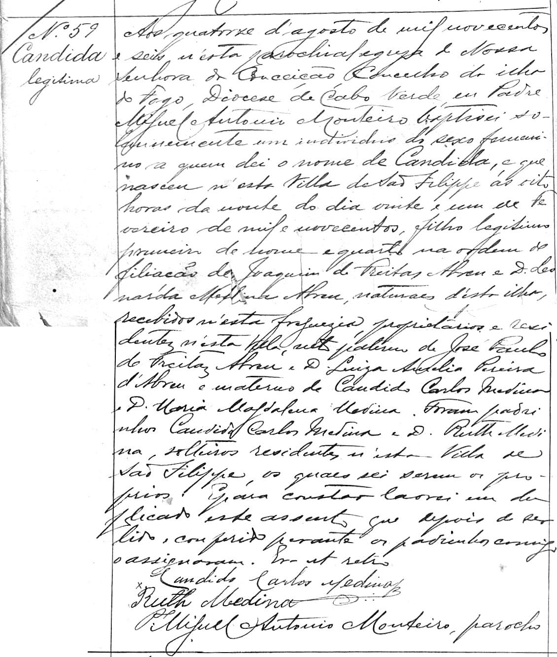 "Divulgados por FamilySearch," registo nº 59; Arquivo Nacional de Cabo Verde, Praia; clique aqui