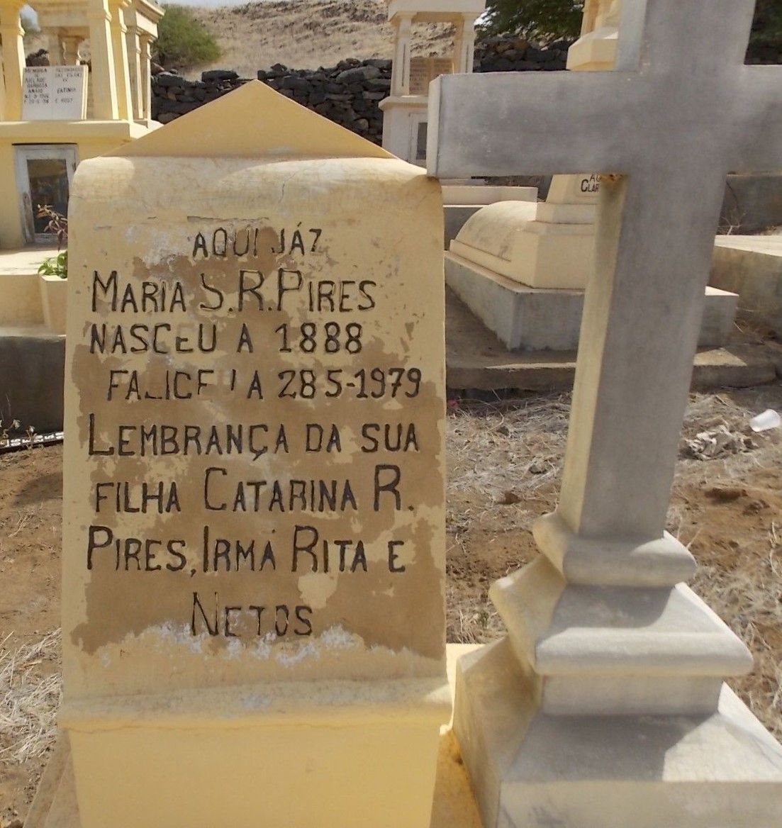 1 "Find a Grave," database ( accessed 17 Nov 2025); Find a Grave, banco de dados e imagens (https://pt.findagrave.com/memorial/186022087/maria_s_r-pires: acessado 17 de novembro de 2025), página do memorial para Maria S R Pires (1888\endash 28 Mai 1979), ID de Memorial do Find a Grave 186022087, citando Sao Filipe Cemeterio, Sao Filipe, São Filipe, Cape Verde; Mantido por Alan and Linda Martineau (colaborador 49360097).