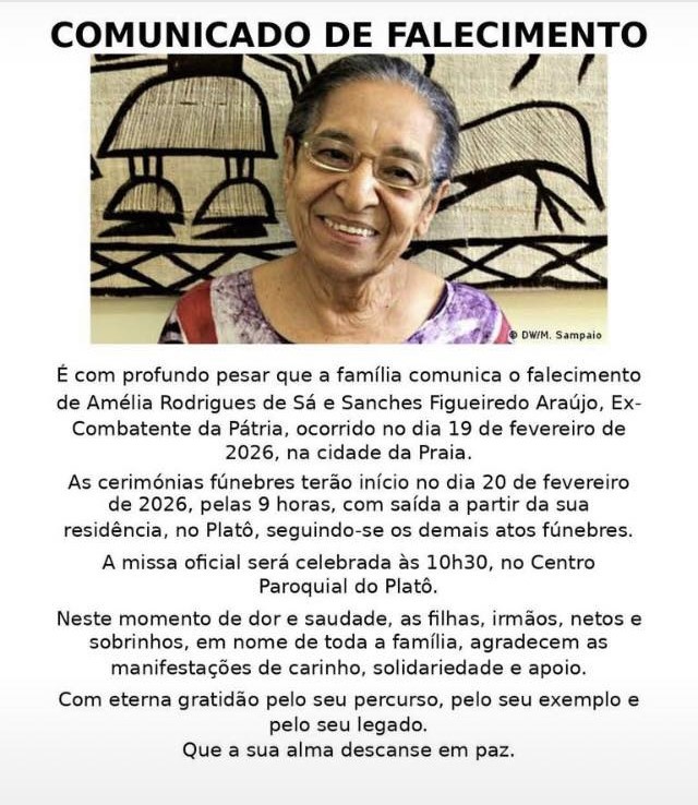 • O seu obituário foi publicado em mural de facebook do PR José Maria Neves, pelo próprio, a 19 Fev 2026 na Cidade da Praia, Ilha de Santiago, Cabo Verde. Amélia casou com José Eduardo de Figueiredo ARAÚJO ®, filho de Rafael António Gomes ARAÚJO ® e Ema Júlia Leite de FIGUEIREDO ®. (José Eduardo de Figueiredo ARAÚJO ® nasceu a 15 Mar 1933 na Cidade da Praia, Ilha de Santiago, Cabo Verde,4 faleceu a 20 Jan 1992 na Cidade da Praia, Ilha de Santiago, Cabo Verde 4 e foi sepultado em 1992 na Cidade da Praia, Ilha de Santiago, Cabo Verde.) |