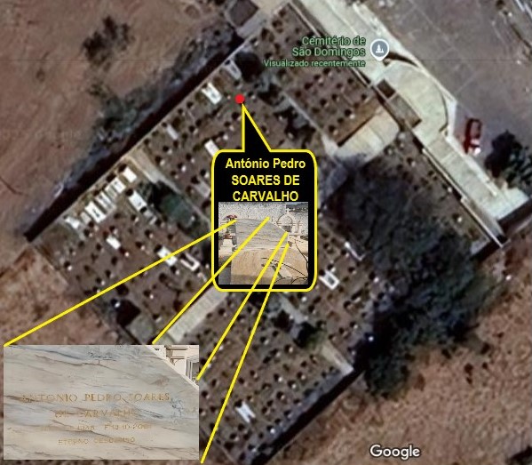 • Sepultura/Campa. António teve uma relação com Maria Isabel do Carmo BARROS. António teve uma relação com Maria do Rosário de Fátima VIEIRA DOS SANTOS ®, filha de Rui Couto da Silva MATOS ® e ? VIEIRA DOS SANTOS ®. (Maria do Rosário de Fátima VIEIRA DOS SANTOS ® nasceu a 5 Mai 1951 na Cidade da Praia, Ilha de Santiago, Cabo Verde, faleceu a 3 Fev 2021 em Amadora, , Lisboa, Portugal e foi sepultada a 12 Fev 2021 em Barcarena, , Lisboa, Portugal.) |