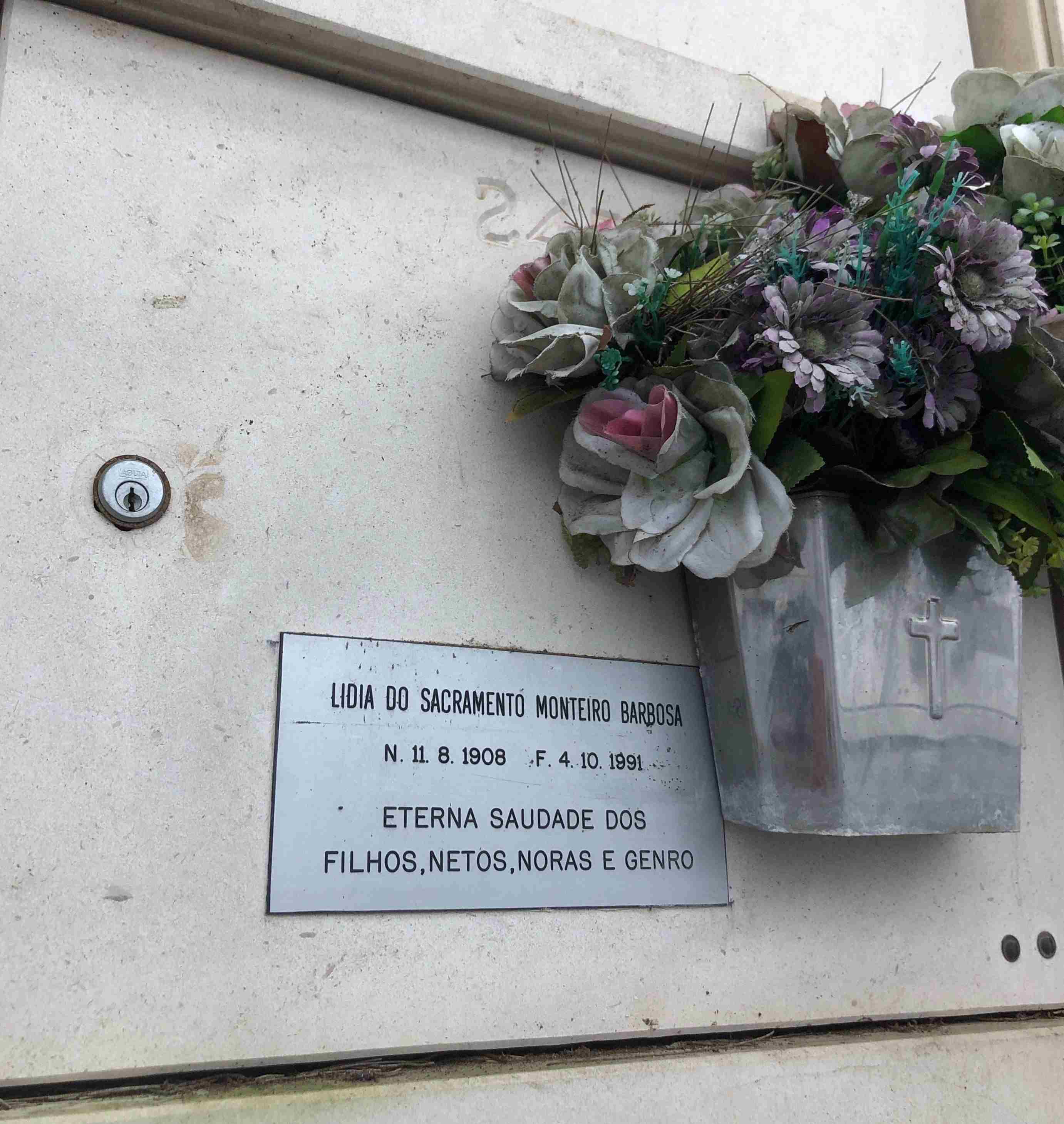 1 "Find a Grave," database ( accessed 9 Nov 2025); Find a Grave, banco de dados e imagens (https://pt.findagrave.com/memorial/262088897/lidia_do_sacramento-barbosa: acessado 9 de novembro de 2025), página do memorial para Lidia do Sacramento Monteiro Barbosa (11 Ago 1908\endash 4 Out 1991), ID de Memorial do Find a Grave 262088897, citando Cemitério de Benfica, Benfica, Lisboa Municipality, Lisboa, Portugal; Mantido por Liberty History (colaborador 49116199).