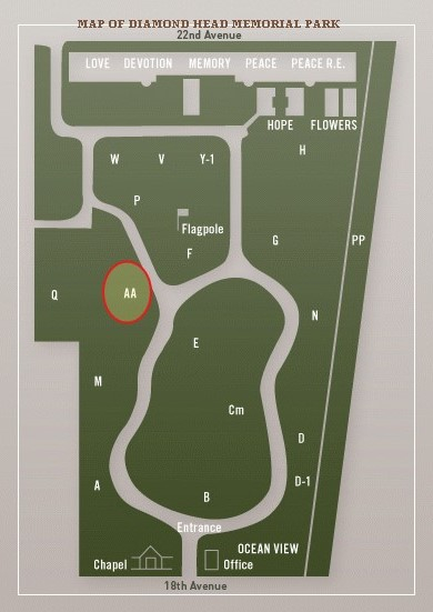 • Foi sepultada ou cremada no Diamond Head Memorial Park em Honolulu, Honolulu, Hawaii, USA. 2