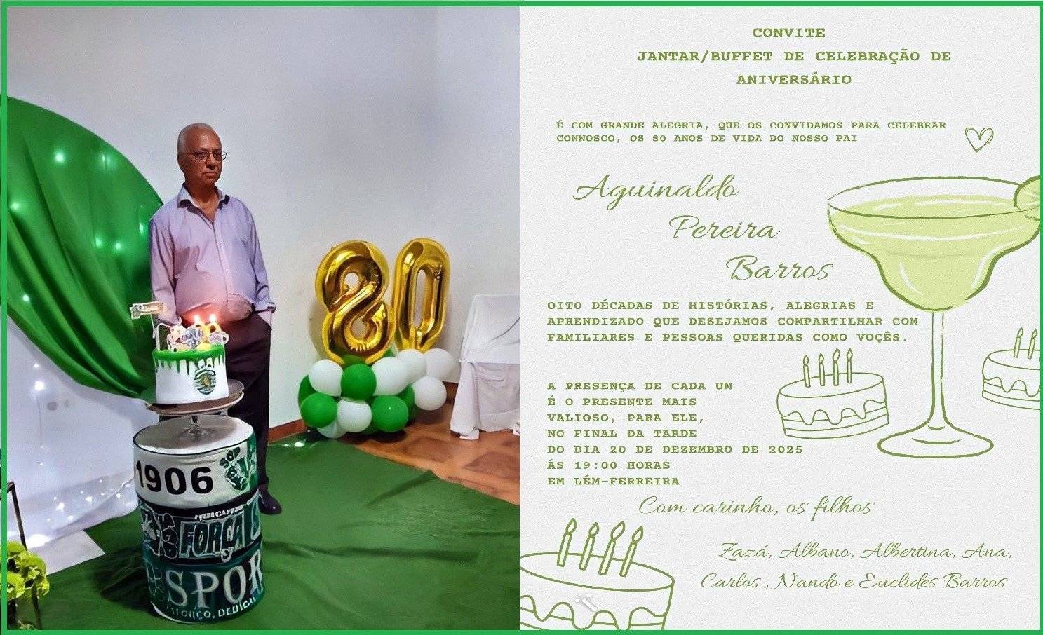 • Foto aniversário: aos 80, 17 Dez 2025. Aguinaldo teve uma filha com Arlinda Mendes MARTINS. Aguinaldo a seguir casou com Emília CELESTE ® a 12 Abr 1975 em Huambo, Angola. (Emília CELESTE ® nasceu a 8 Fev 1955 em Huambo, Angola 2.) |