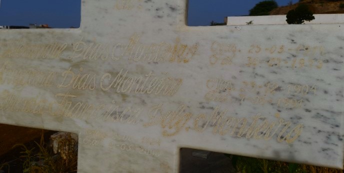 • Sepultura/Campa. Alexandre casou com Olinda Francisca DELGADO ®, filha de ?? e Francisca Miquelina DELGADO. (Olinda Francisca DELGADO ® nasceu a 2 Jun 1924 em Ns. Senhora da Graça, Praia, Santiago, Cabo Verde 3 e faleceu a 8 Mar 2006 na Cidade da Praia, Ilha de Santiago, Cabo Verde.) |