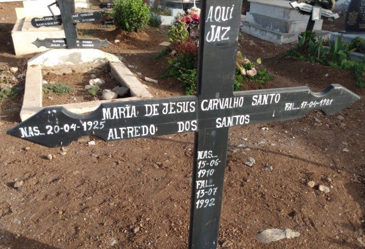 • Sepultura/Campa. Alfredo casou com Maria de Jesus Lopes CARVALHO ®. (Maria de Jesus Lopes CARVALHO ® nasceu a 20 Abr 1925 na Ilha de Santiago, Cabo Verde,2 faleceu a 17 Abr 1981 na Cidade da Praia, Ilha de Santiago, Cabo Verde 2 e foi sepultada depois de 17 Abr 1981 na Cidade da Praia, Ilha de Santiago, Cabo Verde.) |