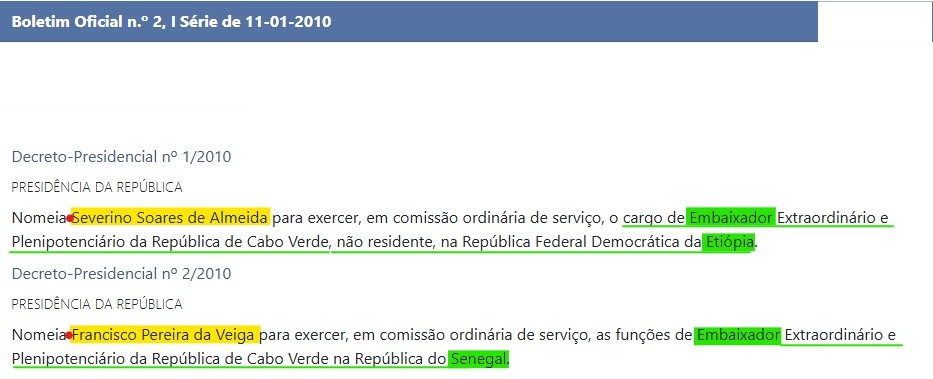 • Cargo: Embaixador no Senegal, em Jan 2010. 1