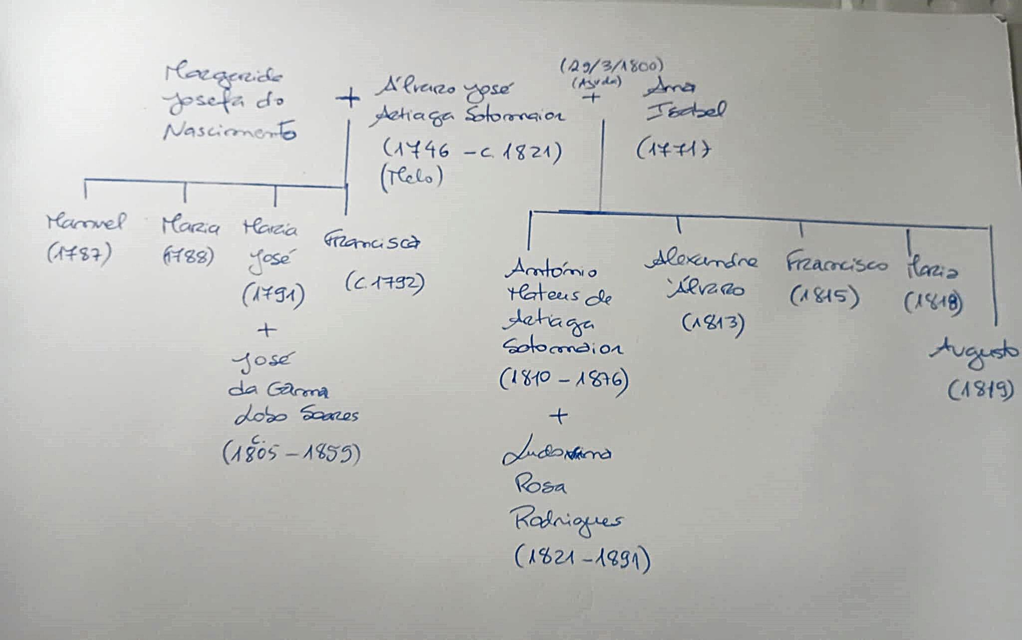 • Descendência: esboço realizado por Maria João Dias (ligada à família Artiaga Sotomaior de Portugal ). 1 • Notas: 1824. Documento nas Finanças comprovam que Álvaro e Ana Isabel ainda eles estavam vivos em 1824, pois pediram um empréstimo. "Capital de 1.000.000 dado ao juro de 5% ao ano, a Álvaro José Artiaga Sotto Maior e sua mulher Ana Isabel".