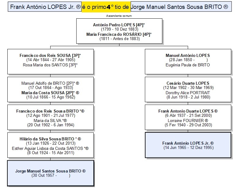 • Parentesco: (em 9º). primo-tio quarto pelo lado paterno de Jorge Manuel Santos Sousa BRITO, o administrador deste site.
