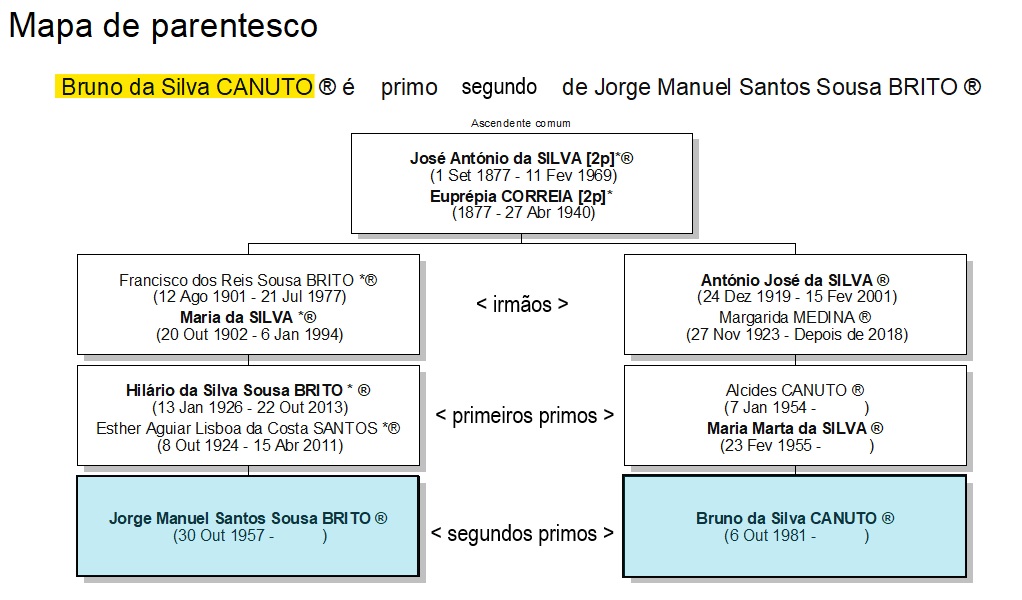 • Parentesco. segundos primos (em 6º) pelo lado paterno de Jorge Manuel Santos Sousa BRITO, o administrador deste site. • Facebook (acesso condicionado às restrições impostas pela pessoa): clique aqui