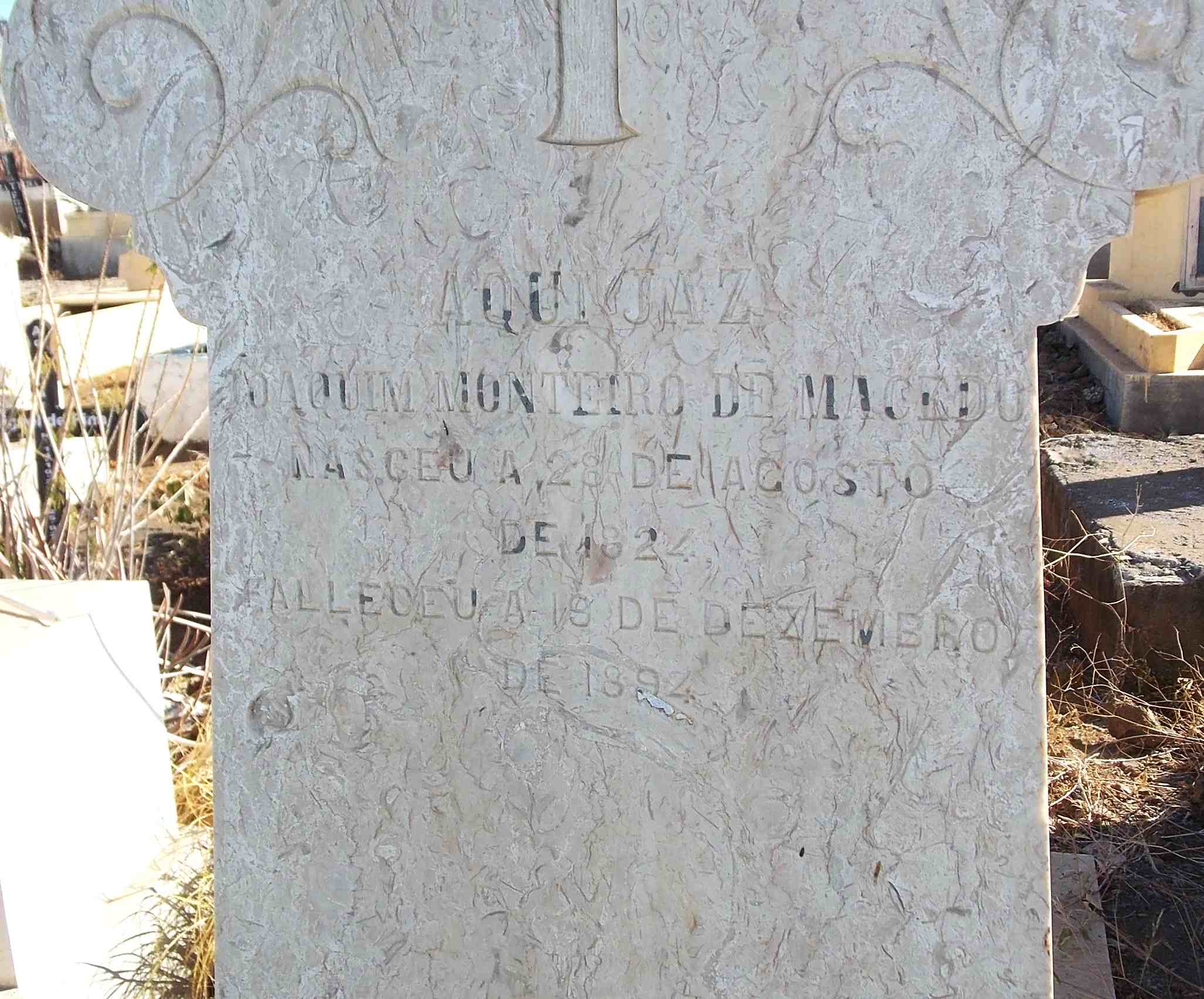 4 "Find a Grave," database ( accessed 16 Nov 2025); Find a Grave, banco de dados e imagens (https://pt.findagrave.com/memorial/185686048/joaquim_monteiro_de-macedo: acessado 16 de novembro de 2025), página do memorial para Joaquim Monteiro de Macedo (28 Ago 1824\endash 19 Dez 1894), ID de Memorial do Find a Grave 185686048, citando Sao Filipe Cemeterio, Sao Filipe, São Filipe, Cape Verde; Mantido por Alan and Linda Martineau (colaborador 49360097).