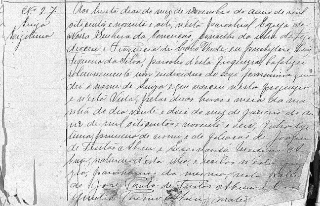 3 "Baptismos S. Filipe Fogo," Cx. 5, peça 24, registo 54; Arquivo Nacional de Cabo Verde, Praia.
