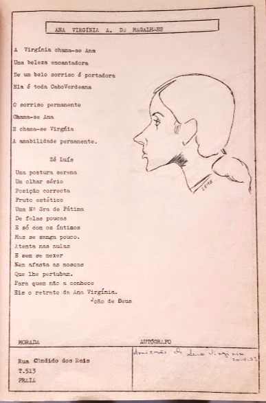 • Caricatura / desenho: aquando do II Curso de Estudos Portugueses de Cabo Verde, em Abr 1973, no Mindelo, (Nossa Srª da Luz) São Vicente, Cabo Verde. Fora um mini-curso do Círculo de Estudos Portugueses, ministrado nas férias da Páscoa e destinado a um grupo selecionado entre os melhores alunos liceais.