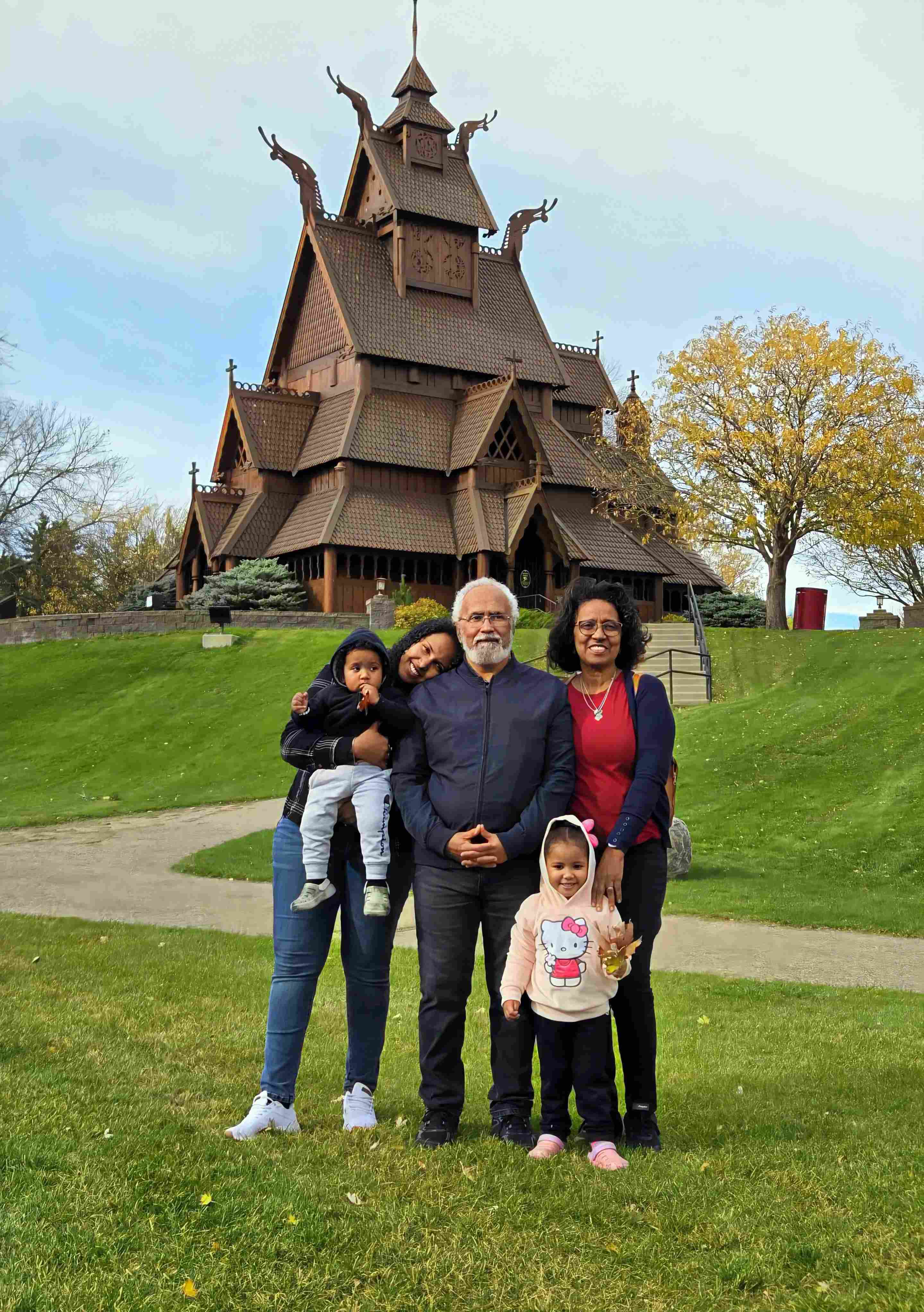• Foto de família: com a filha e os netinhos, filhos dela, a 26 Out 2025, em Minot, Ward, North Dakota, Estados Unidos da América. Jorge casou com Hermengarda da Graça Barbosa BARROS ®, filha de Augusto Barbosa BARROS # ® e Adelaide Fortes do Livramento Leitão da GRAÇA # ®, a 16 Abr 1981 em Lisboa, , Lisboa, Portugal. (Hermengarda da Graça Barbosa BARROS ® nasceu a 28 Nov 1957 em Santíssimo Nome de Jesus, Ilha de Santiago, Cabo Verde 3 e foi baptizado a 22 Jan 1958 na Cidade da Praia, Ilha de Santiago, Cabo Verde 4.)