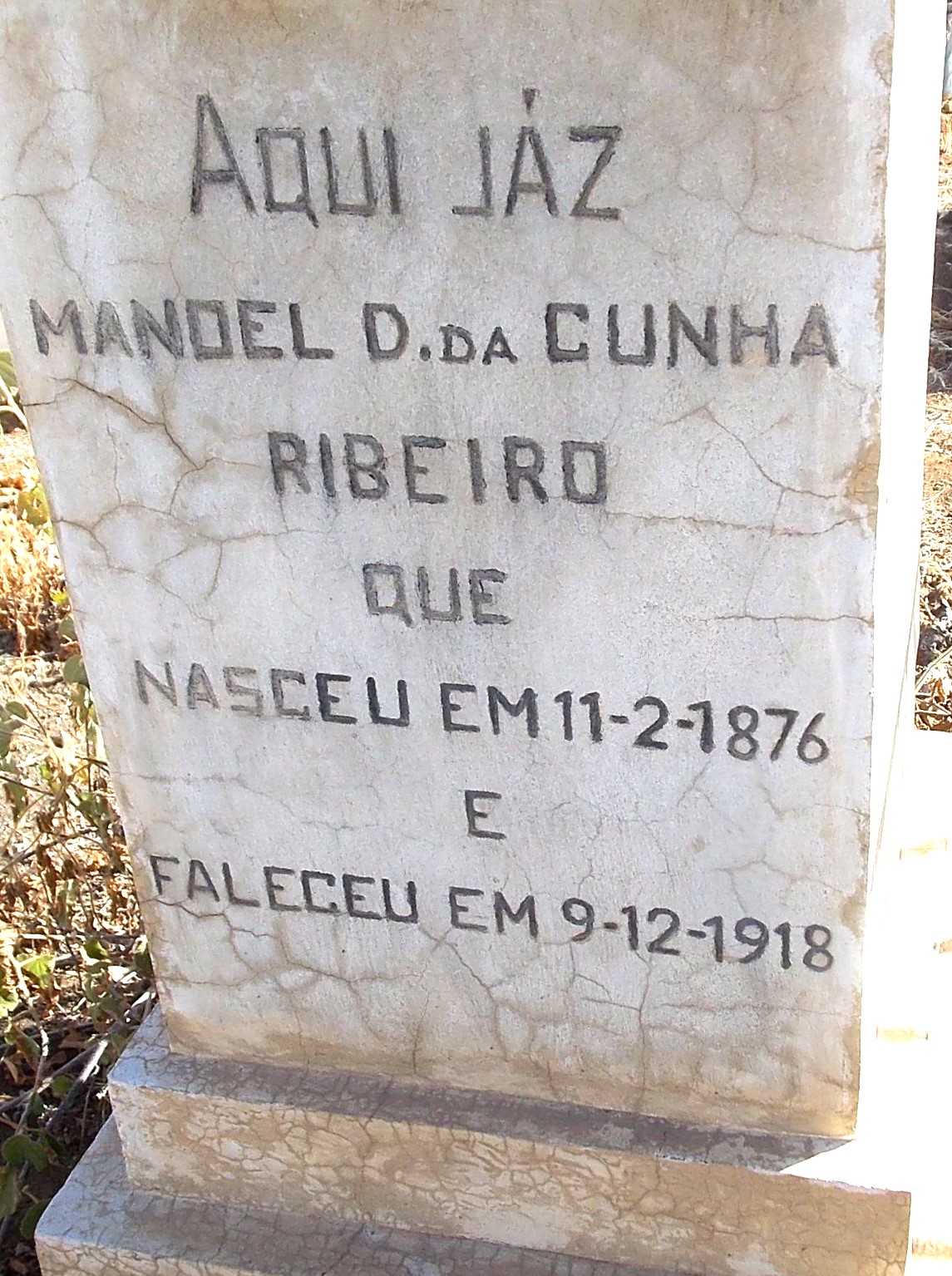 3 "Find a Grave," database ( accessed 17 Nov 2025); Find a Grave, banco de dados e imagens (https://pt.findagrave.com/memorial/185686051/manuel_d_da_cunha-ribeiro: acessado 17 de novembro de 2025), página do memorial para Manuel D da Cunha Ribeiro (11 Fev 1876\endash 9 Dez 1918), ID de Memorial do Find a Grave 185686051, citando Sao Filipe Cemeterio, Sao Filipe, São Filipe, Cape Verde; Mantido por Alan and Linda Martineau (colaborador 49360097).