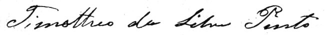 • Assinatura / Rubrica: em documento assinado em 6 Jul 1872. • Morava em Entre-Picos de Boa Entrada a 22 Jun 1890 em Santa Catarina, Santiago, Cabo Verde. 1 Timóteo casou com Anicácia Borges CABRAL, filha de José Maria BORGES e Maria Cabral d' ANDRADE, a 6 Jul 1872 em Santa Catarina, Santiago, Cabo Verde.1 2 (Anicácia Borges CABRAL nasceu em 1846 em Santa Catarina, Santiago, Cabo Verde 1 2, baptizado em Santa Catarina, Santiago, Cabo Verde 2 e faleceu em †.) |