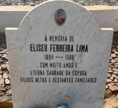 • Sepultura/Campa: no Mindelo, (Nossa Srª da Luz) São Vicente, Cabo Verde. Eliseu casou com Maria Cesarina Barros PIMENTA ®, filha de Manoel Martins PIMENTA ® e Isabel Pereira BARROS ®. (Maria Cesarina Barros PIMENTA ® nasceu a 7 Set 1903 em Santo Antão, Cabo Verde,2 faleceu a 17 Mar 1998 no Mindelo, (Nossa Srª da Luz) São Vicente, Cabo Verde 2 e foi sepultada no Mindelo, (Nossa Srª da Luz) São Vicente, Cabo Verde.) |