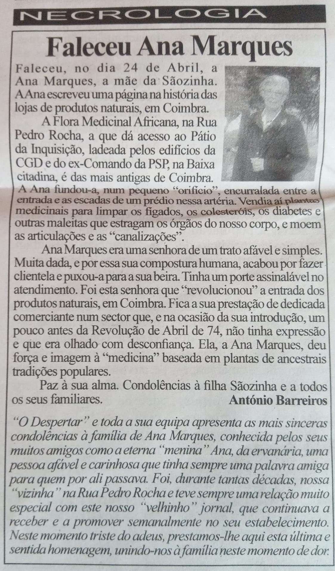 • O seu obituário foi publicado em jornal " O Despertar' em Coimbra, , Coimbra, Portugal. Ana teve uma relação com alguém. |