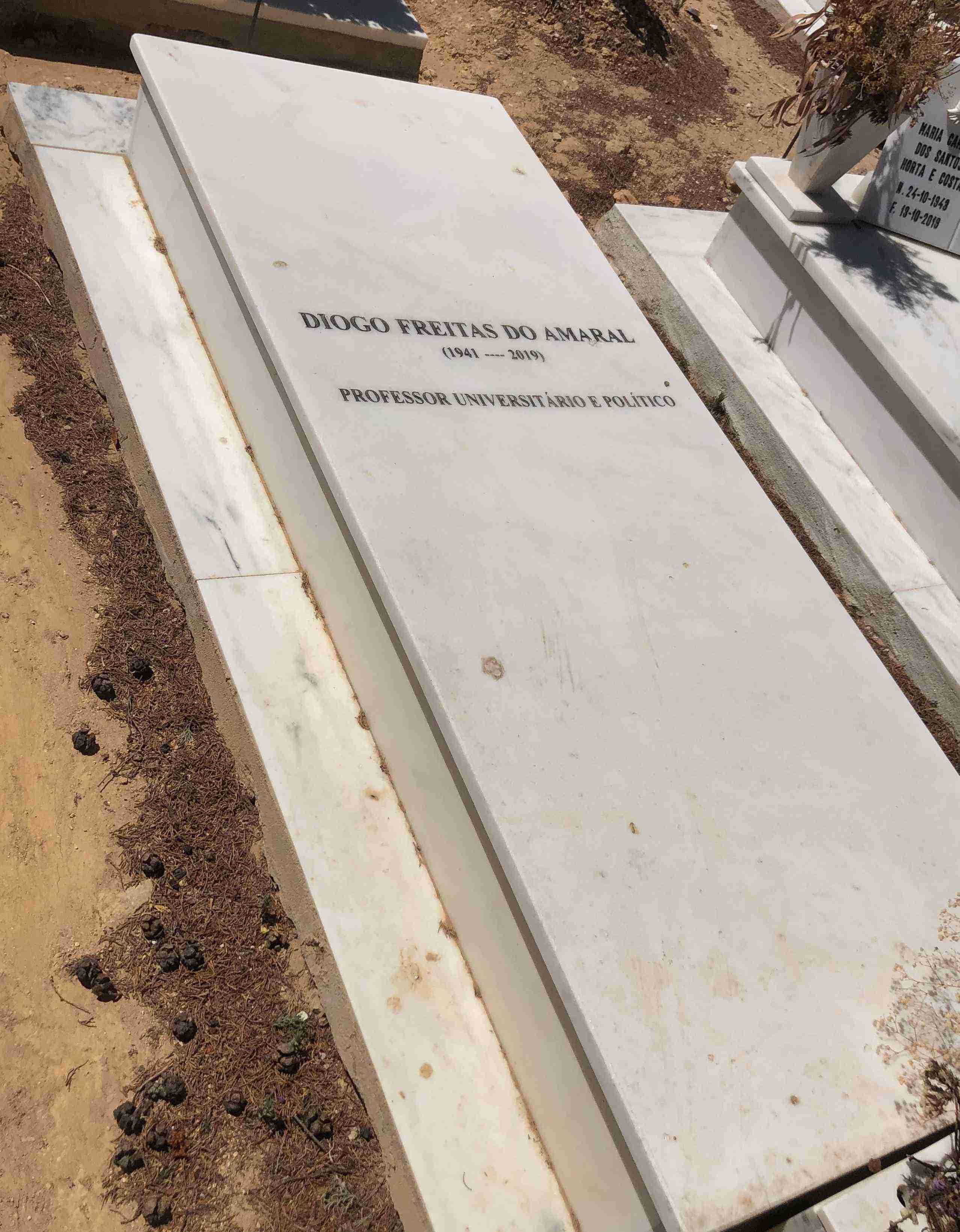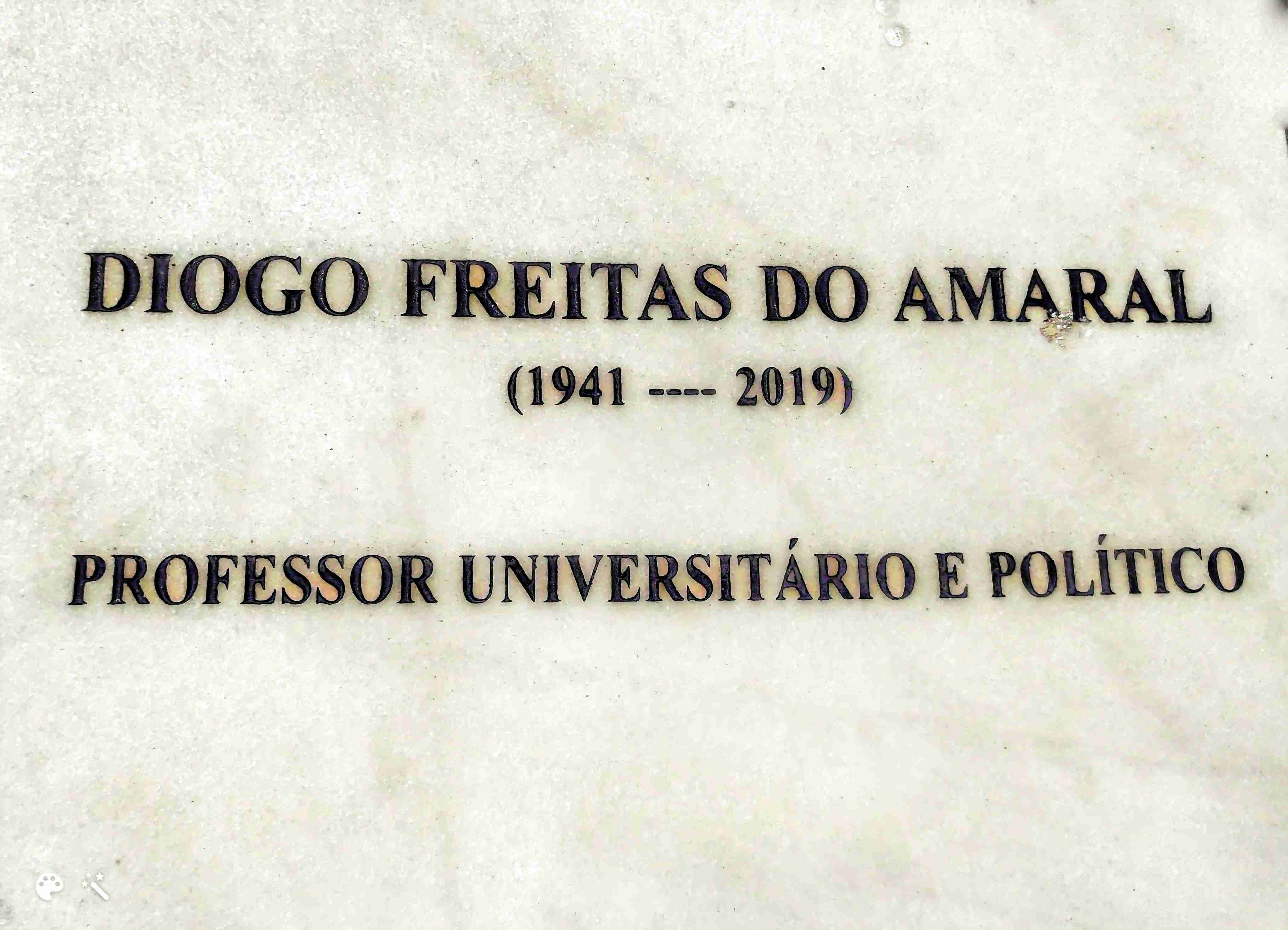 2 "Find a Grave," database ( accessed 23 Out 2025); Find a Grave, banco de dados e imagens (https://pt.findagrave.com/memorial/211606831/diogo-freitas_do_amaral: acessado 23 de outubro de 2025), página do memorial para Diogo Freitas do Amaral (21 Jul 1941\endash 3 Out 2019), ID de Memorial do Find a Grave 211606831, citando Cemitério da Guia, Cascais, Cascais Municipality, Lisboa, Portugal; Mantido por Find a Grave.