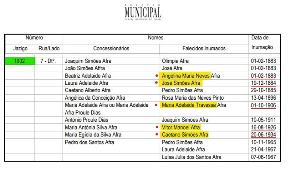 • Sepultura/Campa: Jazigo nº 1902. Vitor casou com Maria Egydia Couceiro da COSTA. (Maria Egydia Couceiro da COSTA nasceu a 26 Dez 1886 em Lisboa, , Lisboa, Portugal e faleceu a 8 Abr 1979.) |