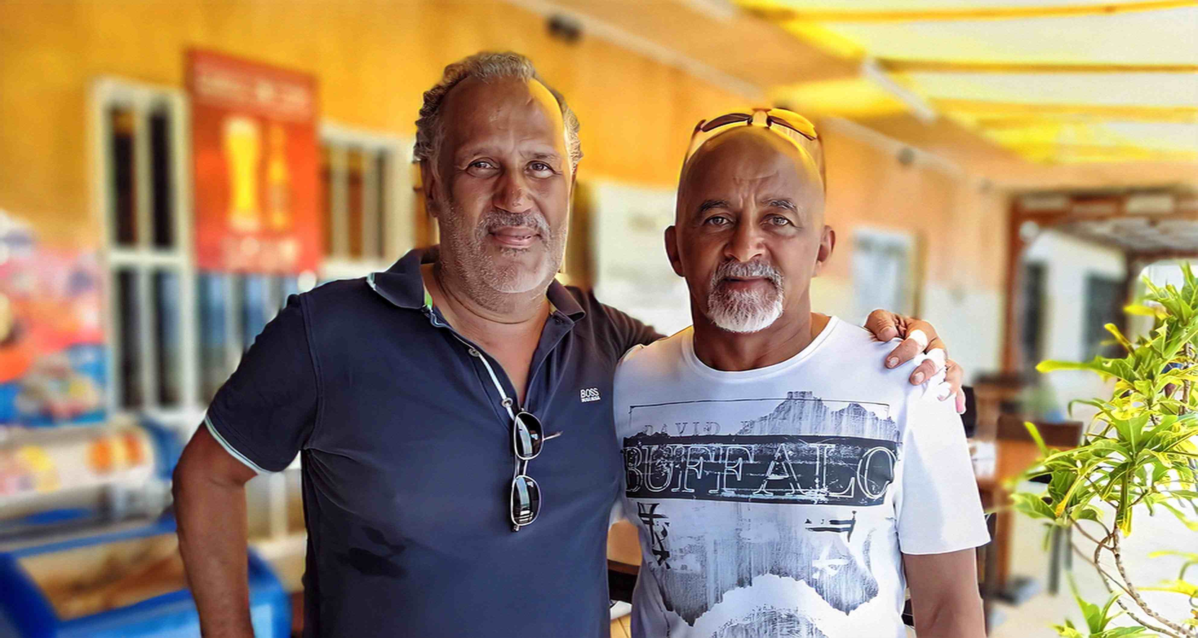 • Foto amizade: 2018. 4 No "Moringo" no Palmarejo Baixo, com o amigo e colega de carteira dos tempos do Liceu da Praia, diz Herminaldo Osvaldo Gonçalves Nogueira Sousa BRITO (na fotografia à nossa esquerda) em seu facebook.